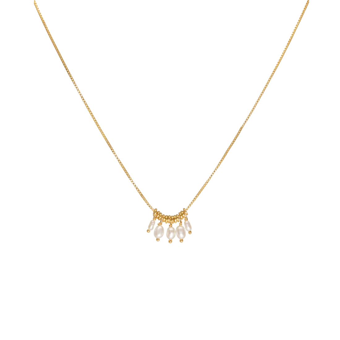 18K yellow gold Five Little Rice Pearls "Luna" necklace. Necklace measures 16".