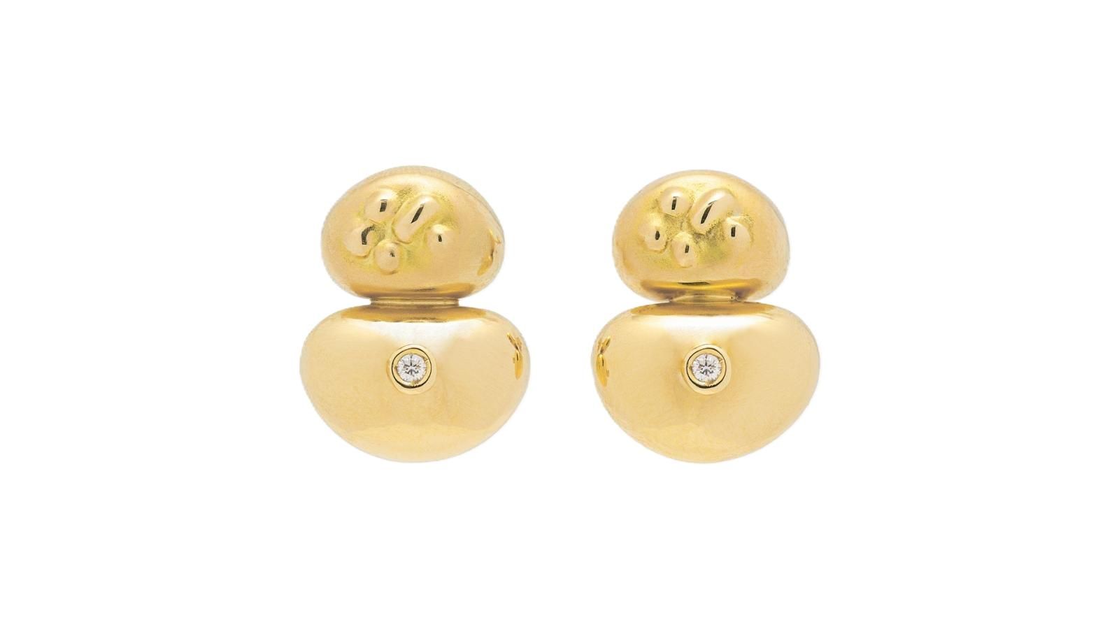 18K yellow gold stud earrings with two round diamonds.